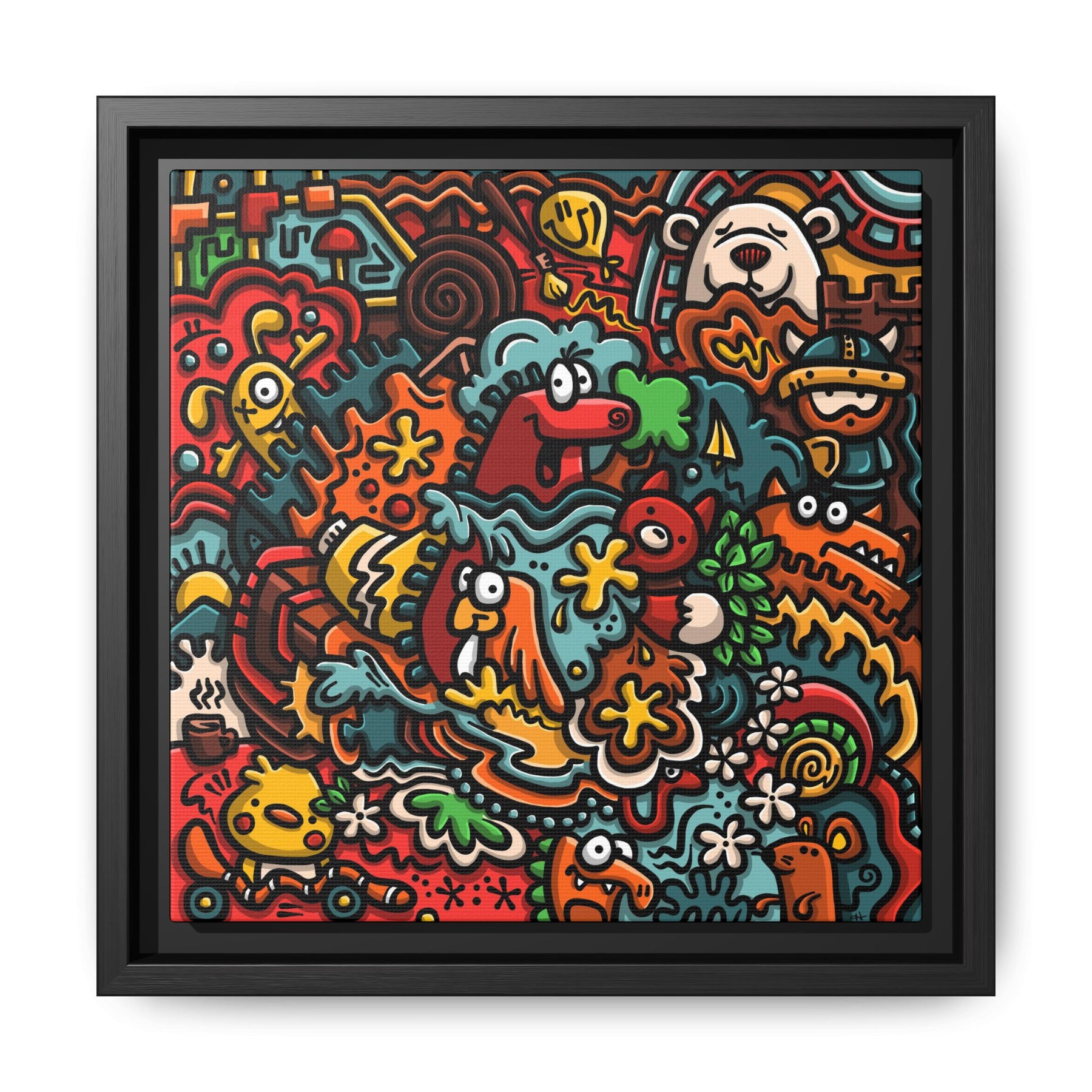 Creatures Paradise Framed Matte Canvas - Colorful Doodle Pop Art Wall Decor